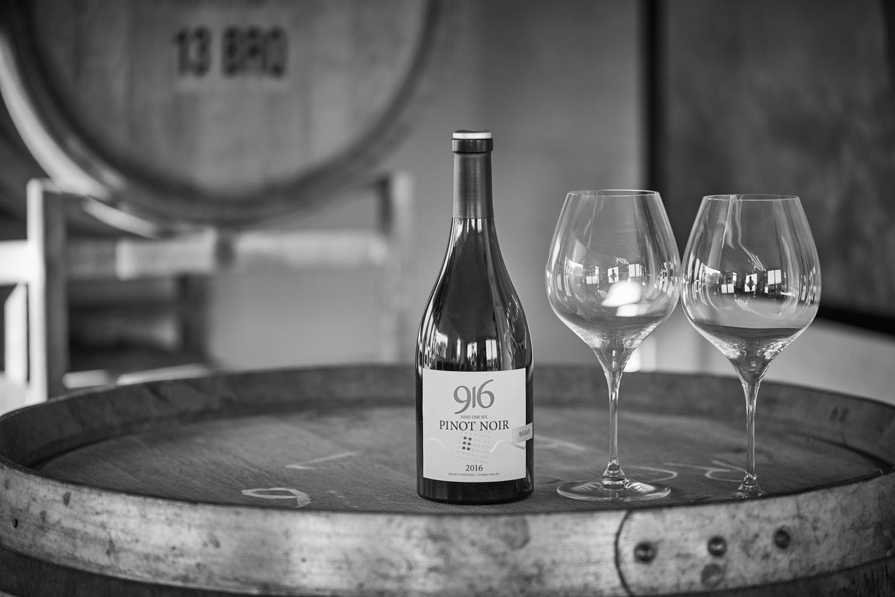The number 916 is not just descriptive of this vineyard’s location; the symmetry of its form also reflects the philosophy of balance and harmony in viticulture and winemaking practices. At its heart, Nine One Six showcases site and seasonal variations which are unique to the Steels Creek microclimate within the Yarra Valley region. Harvest is deliberately limited in quantity, handpicked, and segmented by distinctive fruit characters. Vintages are only produced in years of unobjectionable conditions.